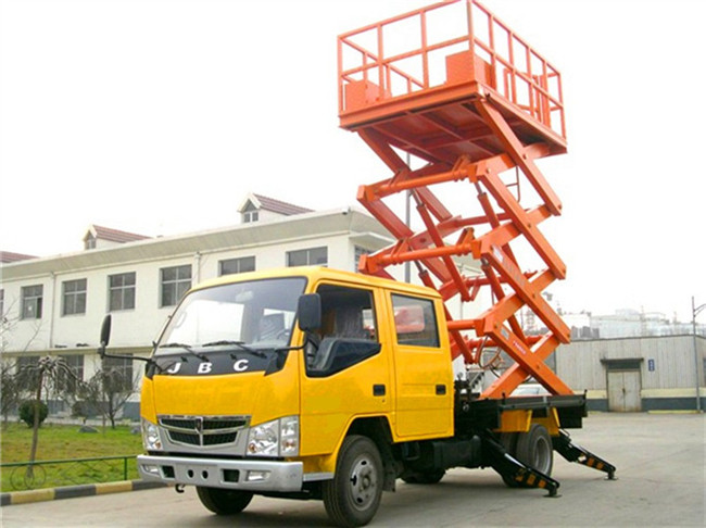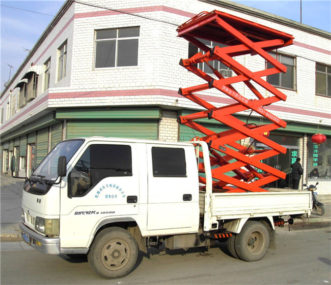 汽車載式液壓升降臺:是由升降臺和汽車配套改裝而成的。它接取汽車引擎動力,實現(xiàn)升降臺的升降功能。適用于大流動量的高空作業(yè)。